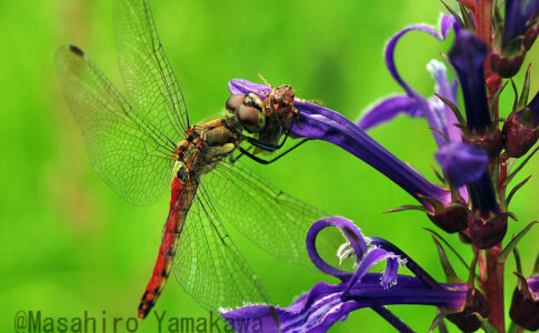 こちらは♂。濃紺が美しいものの、♀の方が鮮やかで、知らない人が見ると、雌雄逆に見えるかもしれない。