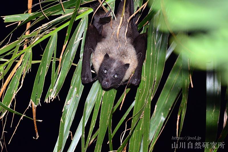 翼を広げると60㎝にもなる、果実や花を食べるコウモリです。特に夕暮れ時などに飛ぶ姿がよく見られますが、日中に活動することもあります。イリオモテヤマネコの餌のメニューにもなっています。