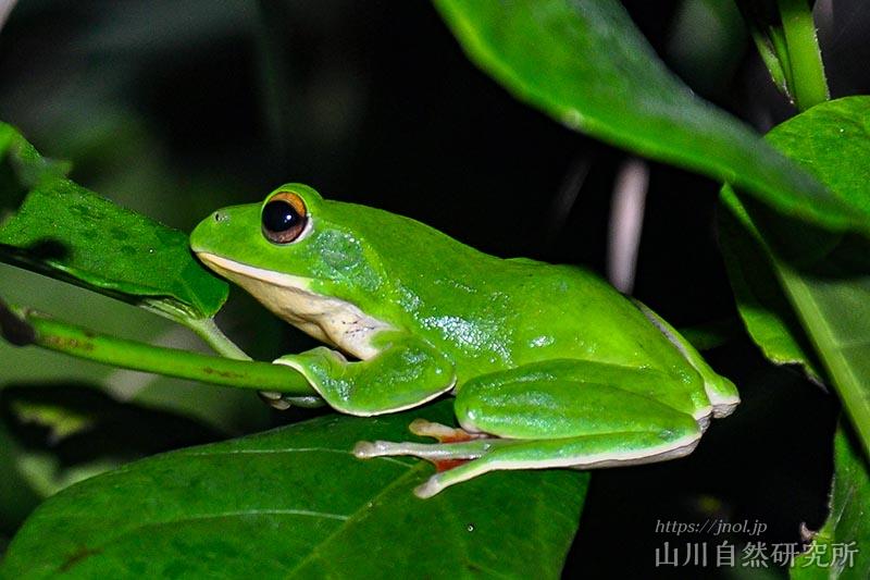 石垣島と西表島に棲息する、大きさ4~6㎝ほどの綺麗な緑色のカエル。